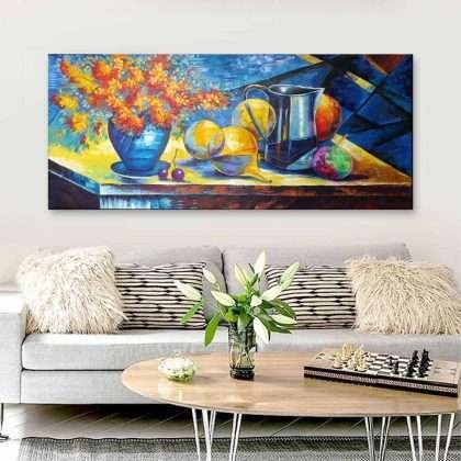 Material: Acrílico sobre lienzo, con marco de madera color blanco. Formato: 35 x 80 cm Artista: Angel Guerra Año: 2022